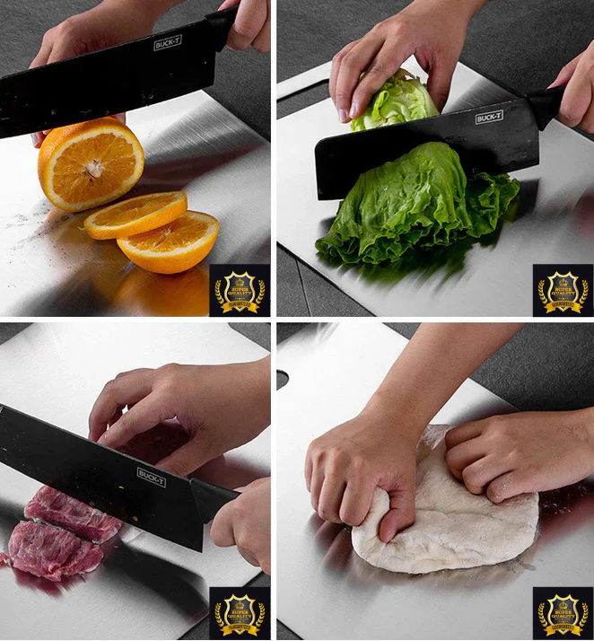 Higiene sin esfuerzo: A diferencia de las tablas de plástico y madera, el titanio no absorbe humedad ni alberga bacterias, garantizando un entorno de cocina más limpio y saludable.